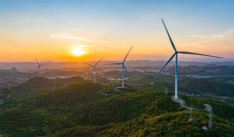 万山区鱼塘乡风电场距离铜仁市区约20km,外部交通较为便利,机位点位分布在海拔 800-1000 之间。风电场容量为 100MW,安装 20台 5.0MW 风电机组。新建一座110kV升压站。工程于2023年4月开工,2024年8月竣工。